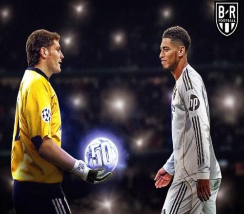 超越卡西,贝林厄姆以22岁128天刷新欧冠50场最年轻纪录