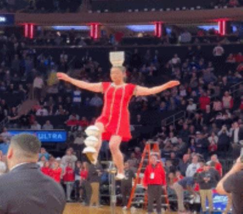 在各大赛事中场休息的时候通常会安排一些表演节目,杂技表演就是常见的一种表演形式,而篮球与杂技又有着独特的匹配度。