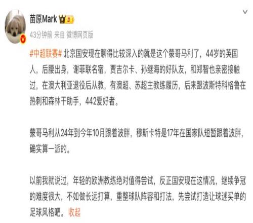 此前,有媒体透露一支中超北方俱乐部,与44岁澳超冠军主帅蒙哥马利接触。而北京时间12月19日,知名记者苗原证实,有意蒙哥马利的中超俱乐部正是老牌豪门北京国安。