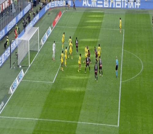 第45分钟,拉比奥头球摆渡,普利希奇后点推射破门,米兰1-0领先