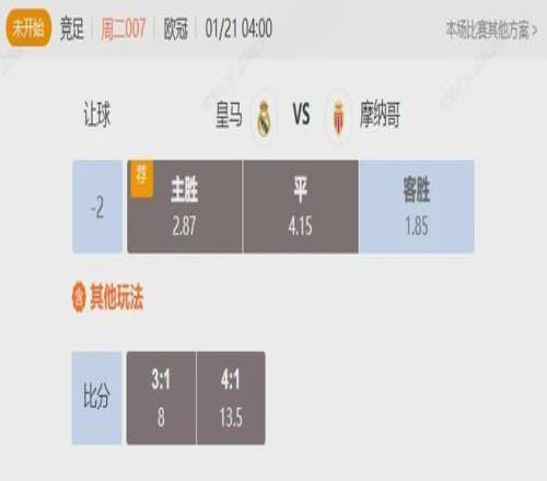 竞足 周二007欧冠皇马VS摩纳哥