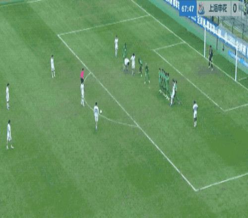 3分钟后,申花获得前场位置相当好的任意球,陈晋一圆月弯刀,皮球直挂死角。凭借这一世界波,两队回到同一起跑线。