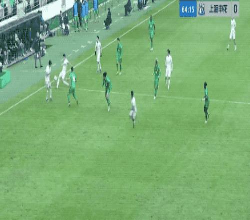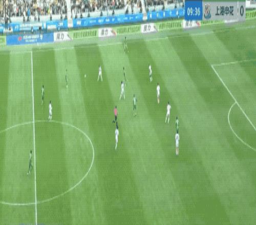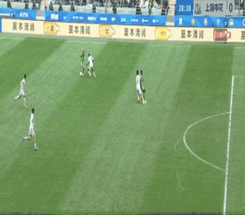 第35分钟,申花开出角球,朱辰杰头球摆渡,拉唐跑过了,错失良机。