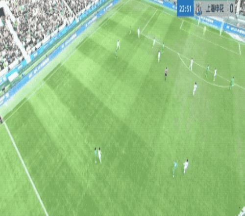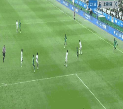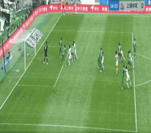 第50分钟,申花的角球几经波折终于开出,陈晋一在贾非凡的干扰下回头望月,皮球击中边网。