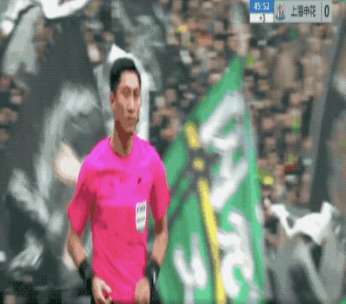 申花球员有些紧张,VAR认定法比奥越位在先,给了申花后场任意球。