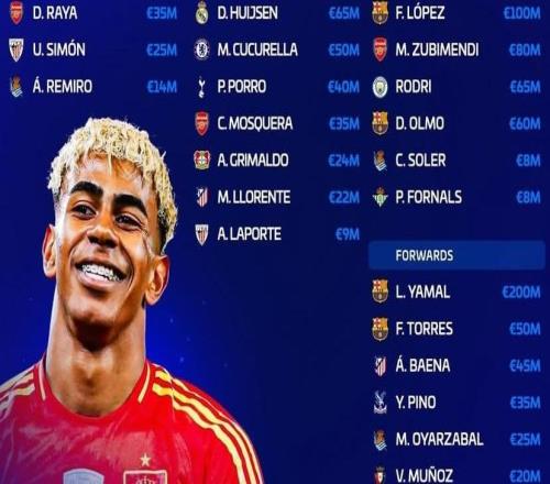 西班牙新一期大名单身价榜:亚马尔2亿欧第1,巴萨占据前4位 -