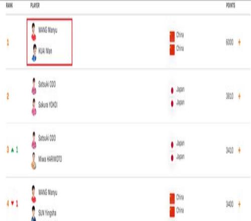 目前王曼昱和蒯曼以6000分排名女双世界第一。实际上,两人联手的次数并不多,但是成功率非常高。蒯曼和林诗栋联手,以7398分排名混双世界第一。不过,蒯曼和林诗栋组合明显逊色王楚钦/孙颖莎组合。